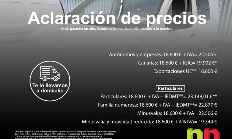 - Particulares: 18.600€ + IVA + IEDMT****= 23.148,01€