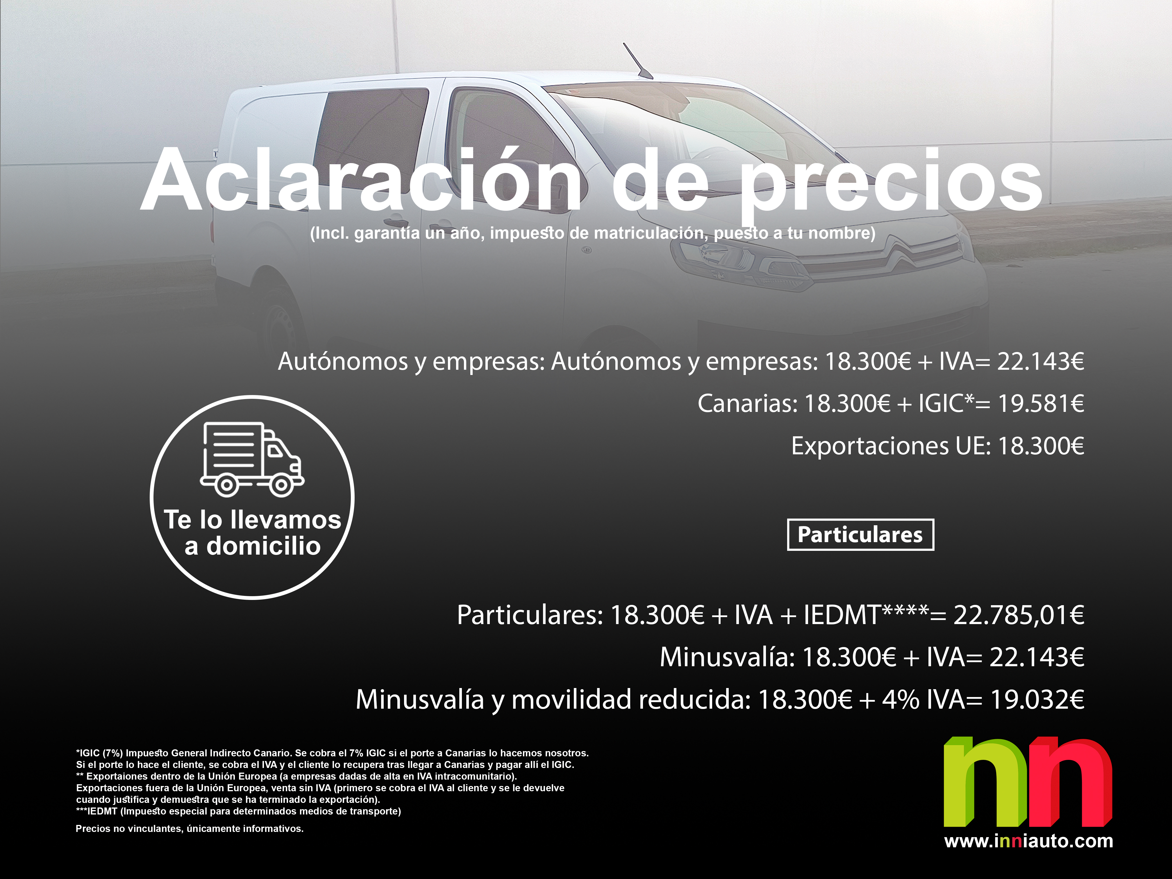 - Particulares: 18.300€ + IVA + IEDMT****= 22.785,01€