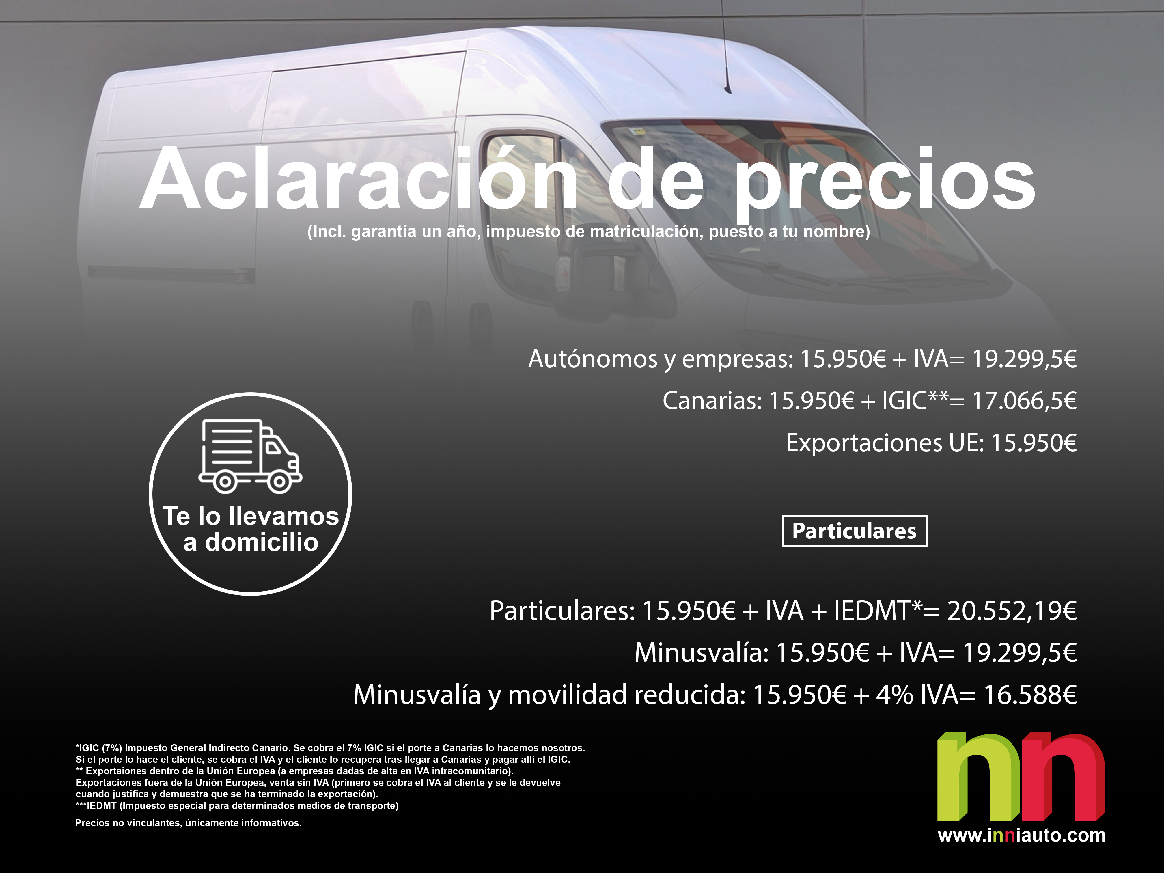 • Particulares: 15.950€ + IVA + IEDMT*= 20.552,19€