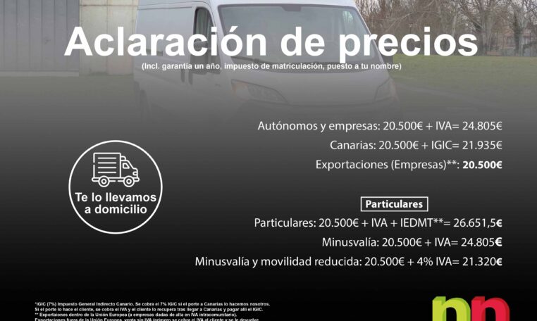 - Canarias: 20.500€ + IGIC**= 21.935€