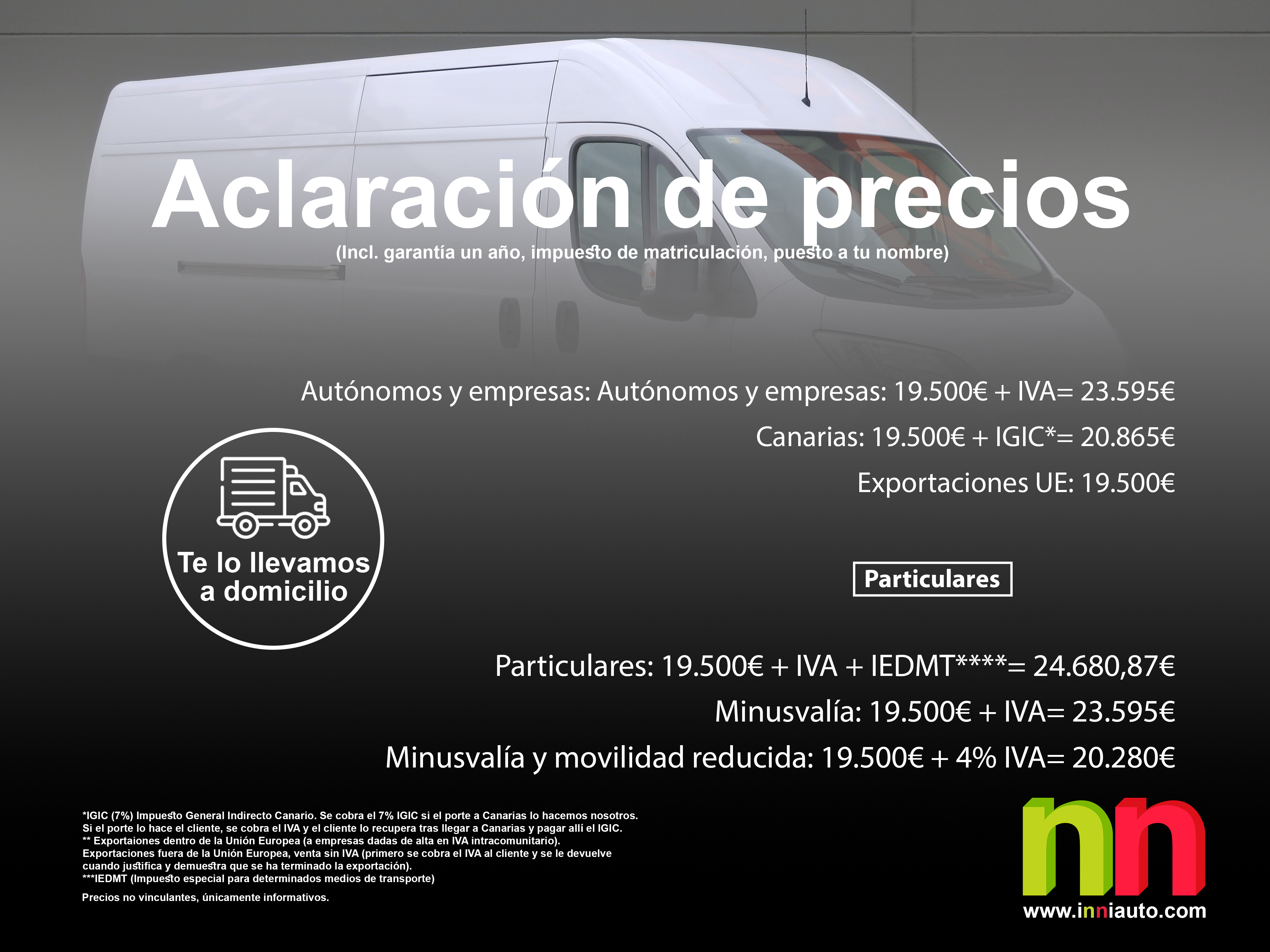 • Particulares: 19.500€ + IVA + IEDMT****= 24.680,87€