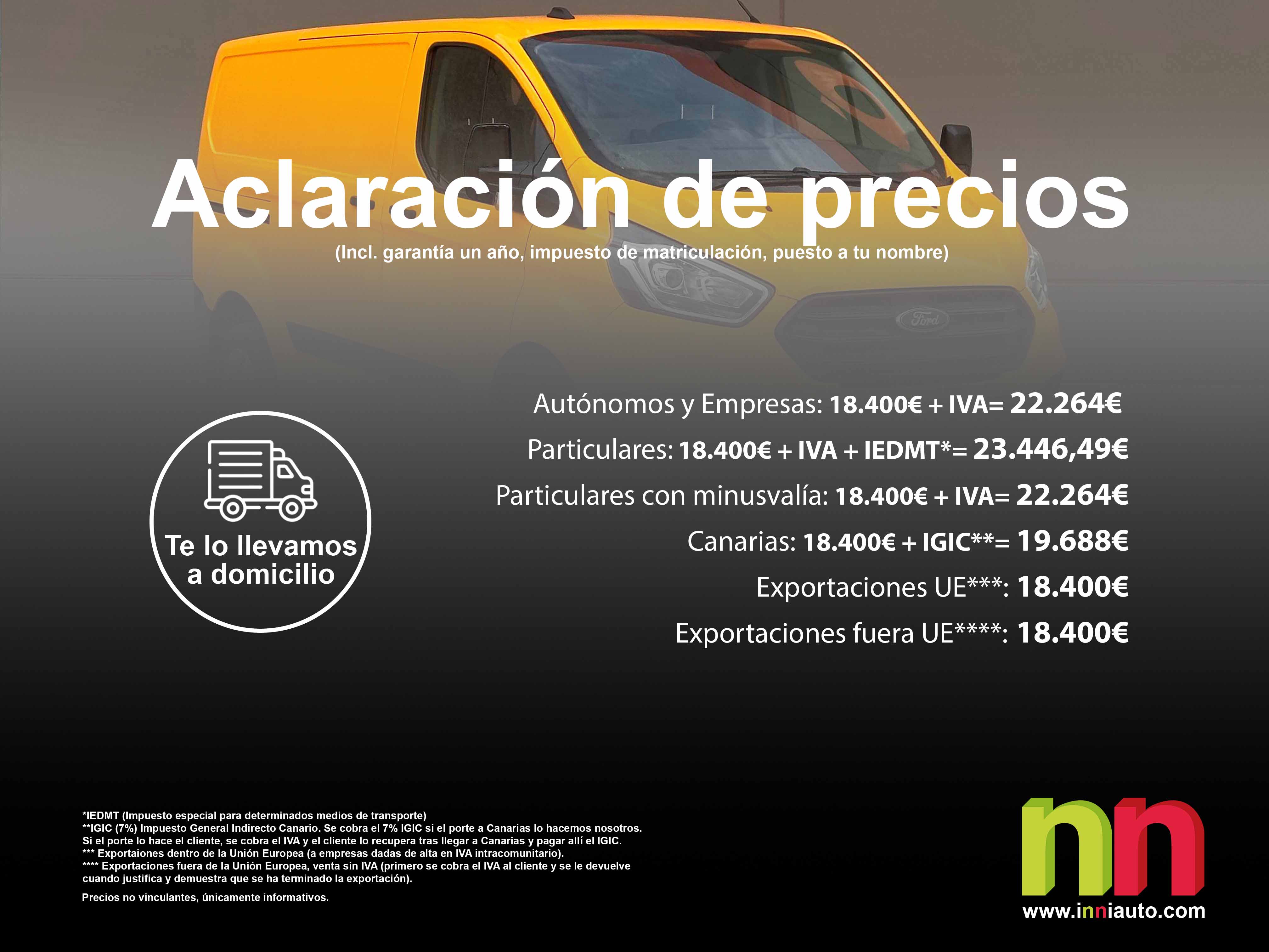 - Particulares: 18.400€ + IVA + IEDMT*= 23.446,49€