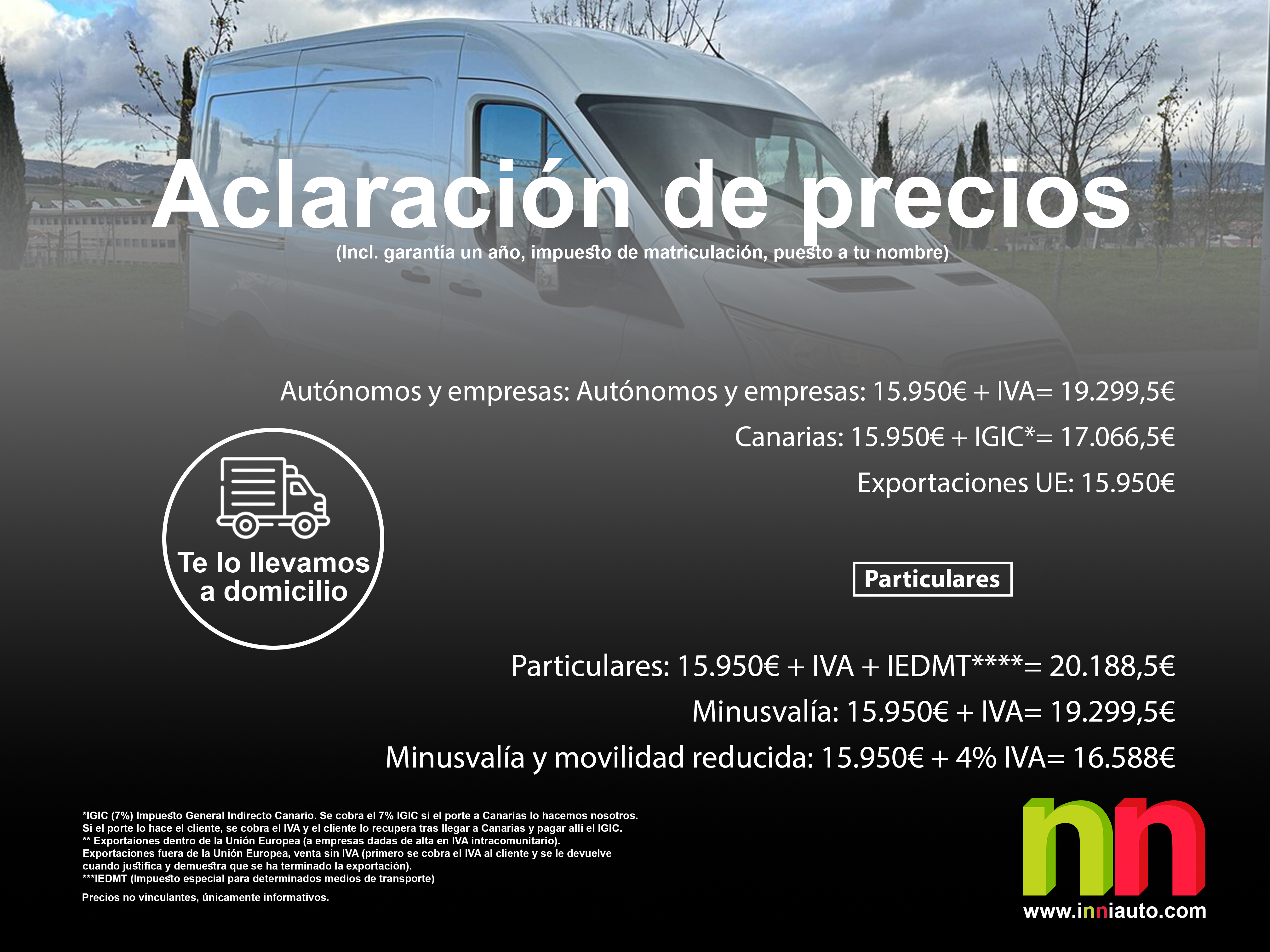 - Particulares: 16.600€ + IVA + IEDMT****= 20.975€