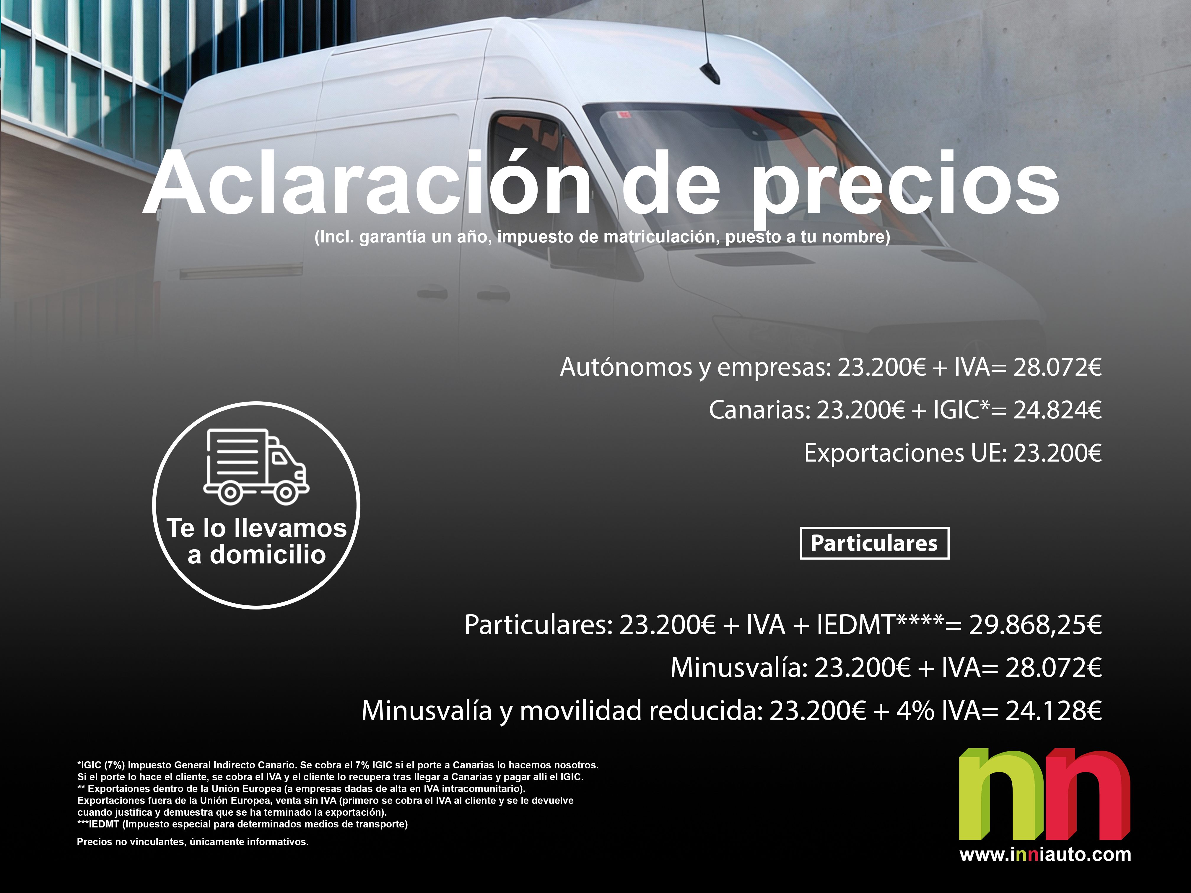 - Particulares: 23.200€ + IVA + IEDMT****= 29.868,25€