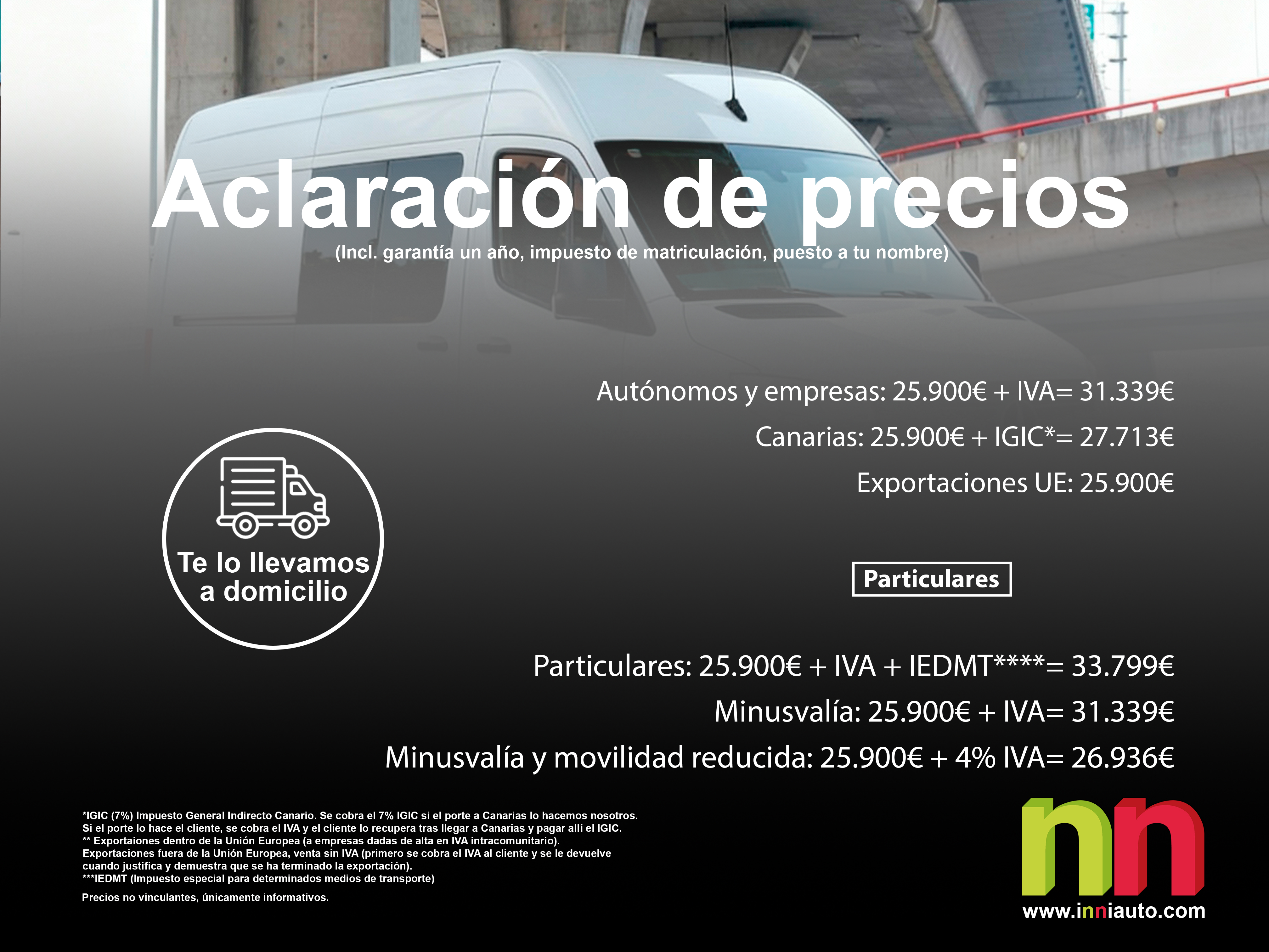 - Particulares: 25.900€ + IVA + IEDMT****= 33.799€