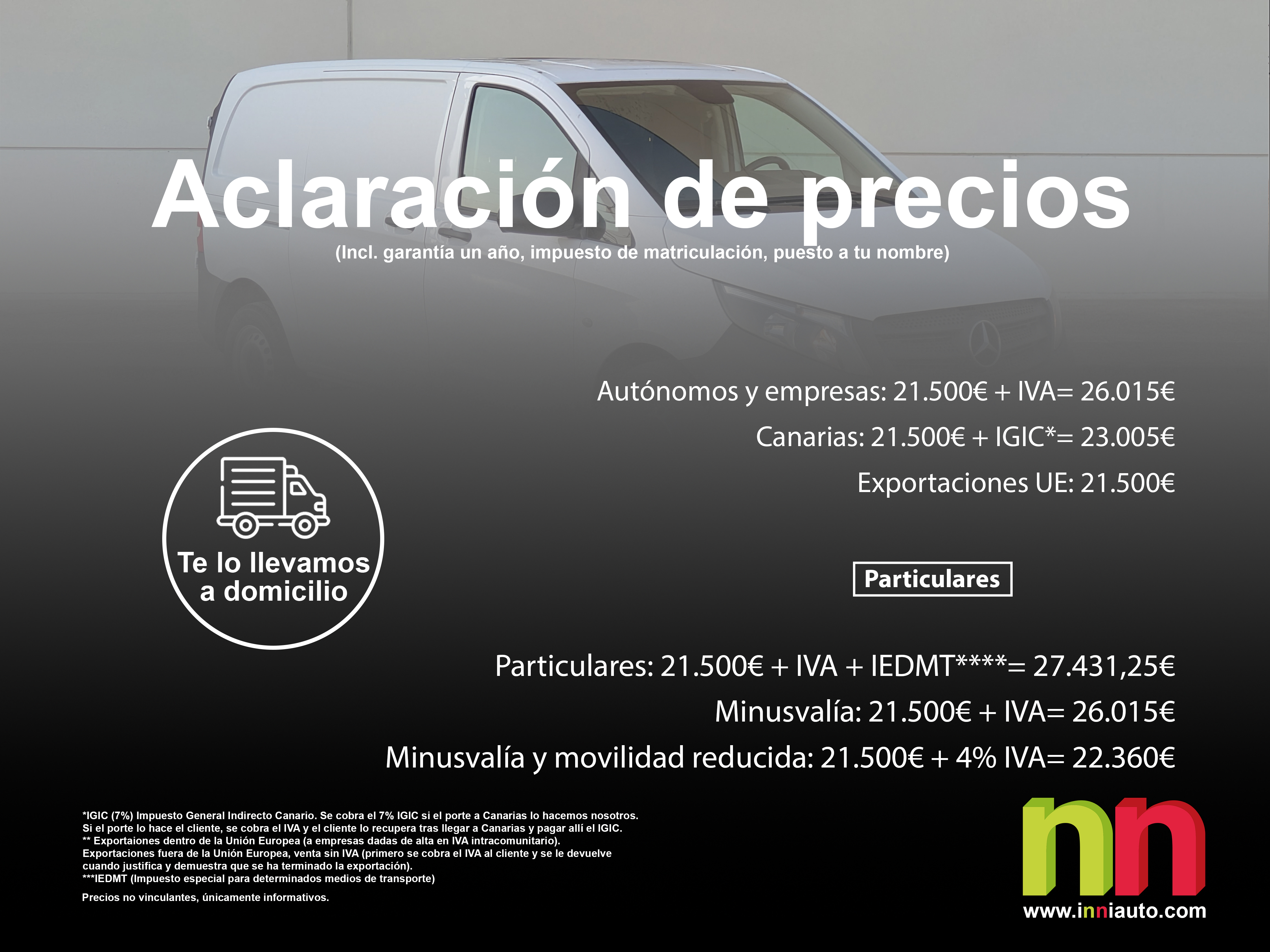 - Canarias: 21.500€ + IGIC*= 23.005€