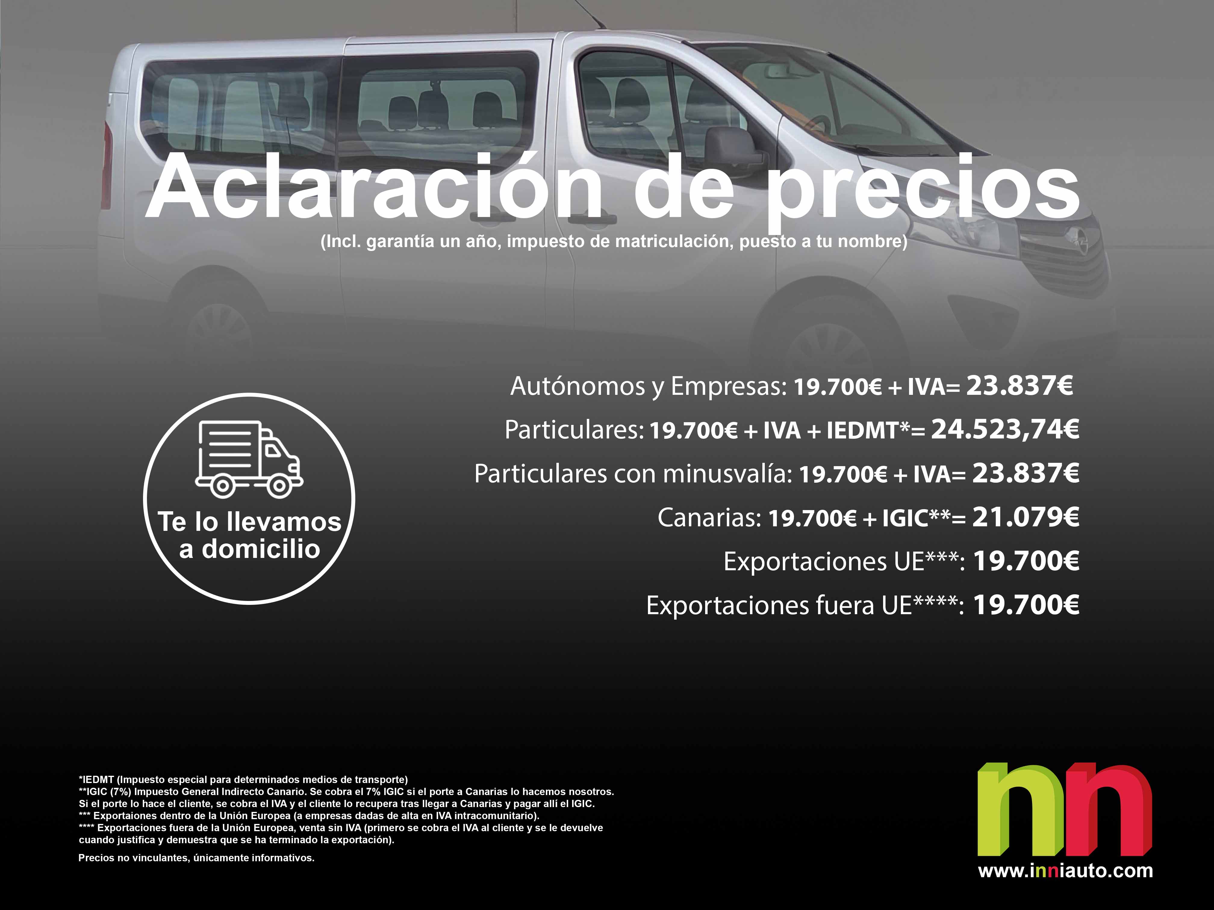 - Particulares: 19.700€ + IVA + IEDMT*= 24.523,74€