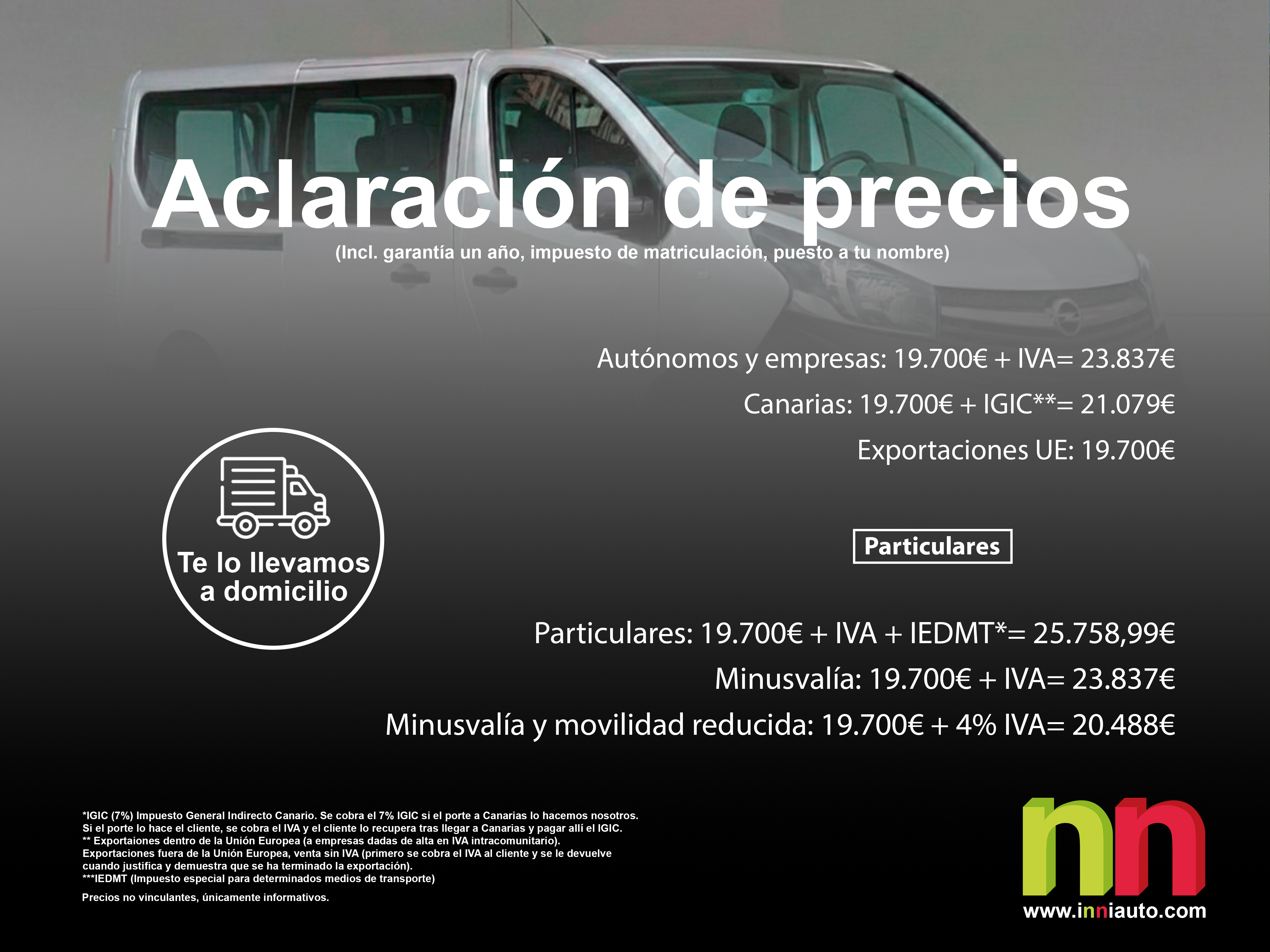 - Particulares: 19.700€ + IVA + IEDMT*= 25.758,99€