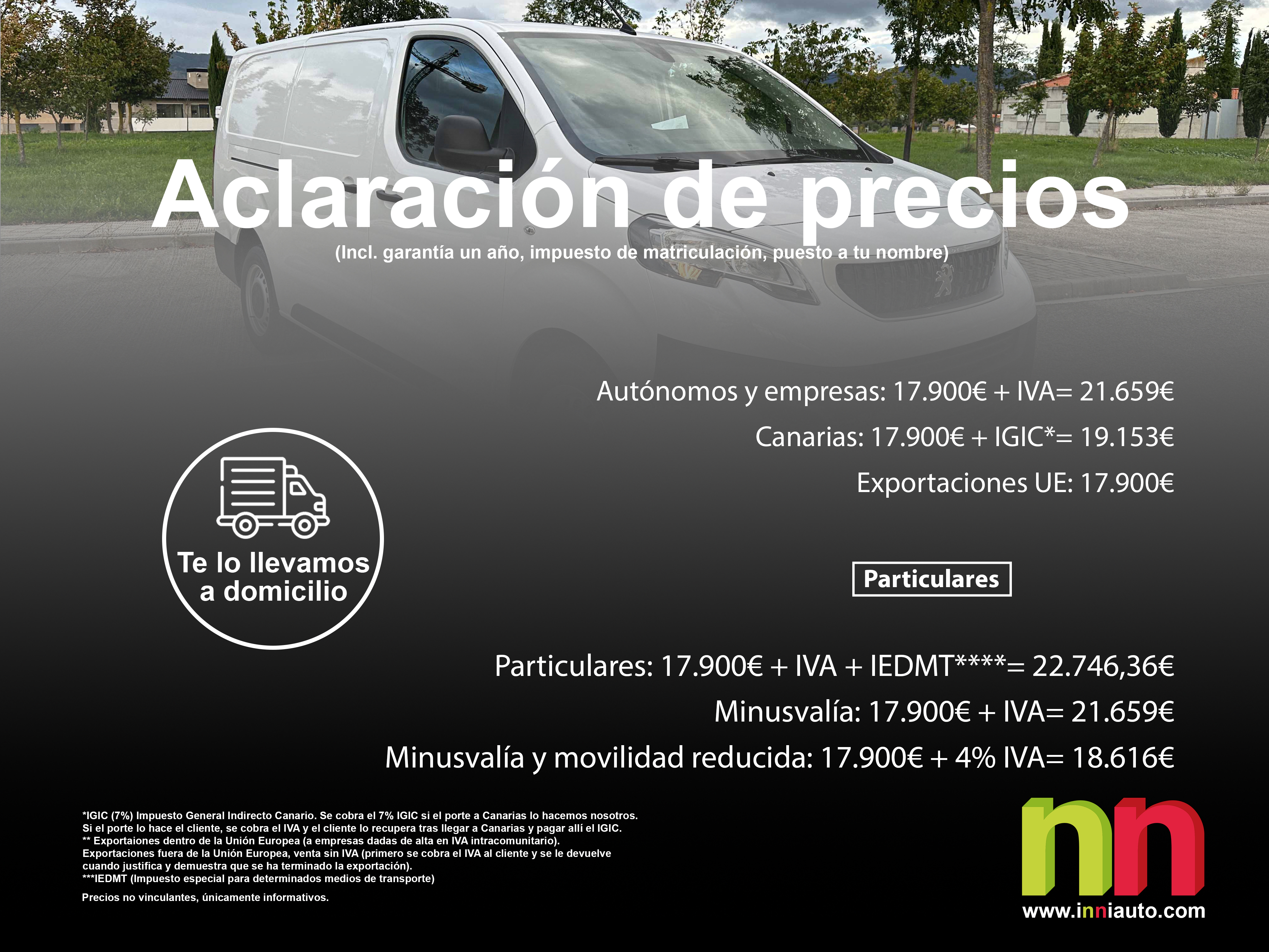 - Particulares: 17.900€ + IVA + IEDMT****= 22.746,36€