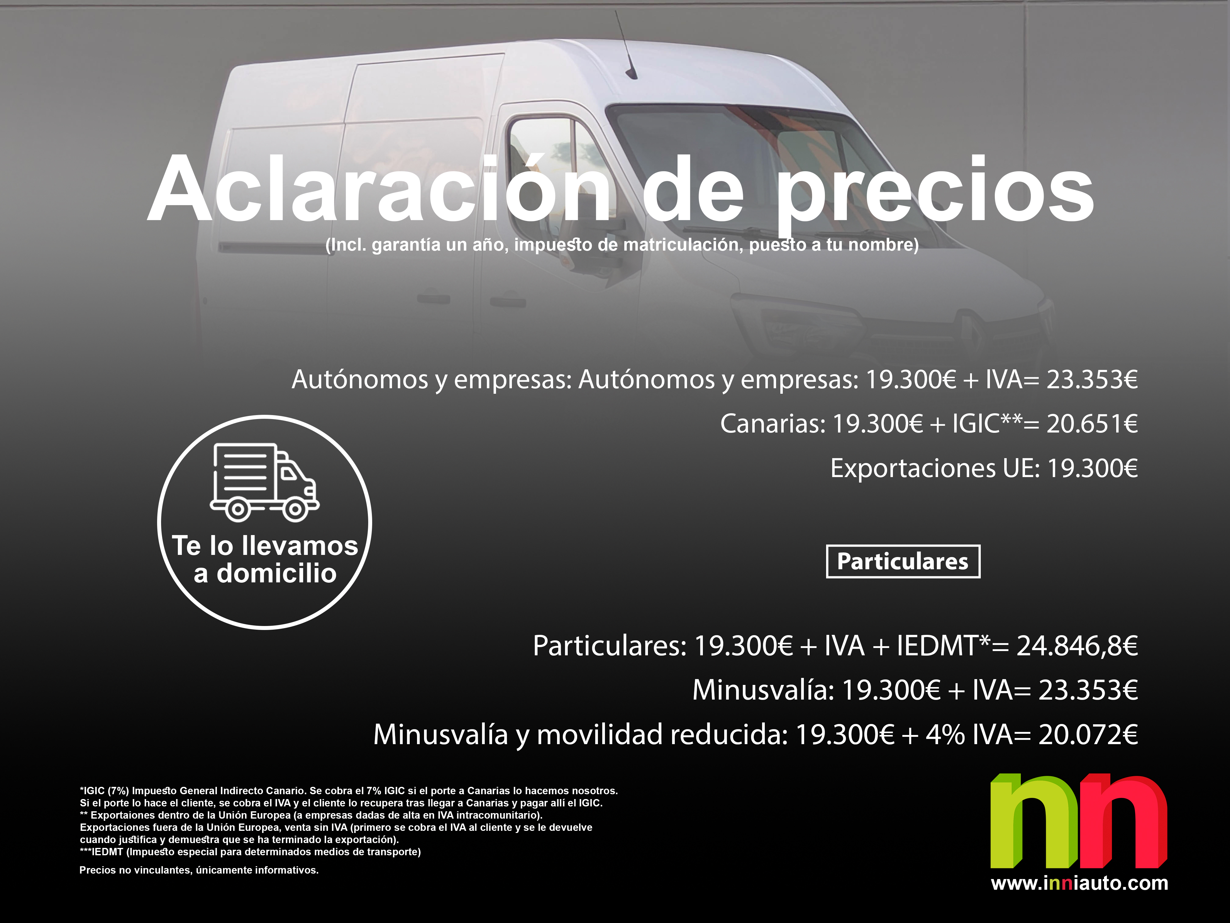 - Particulares: 19.300€ + IVA + IEDMT*= 24.846,8€