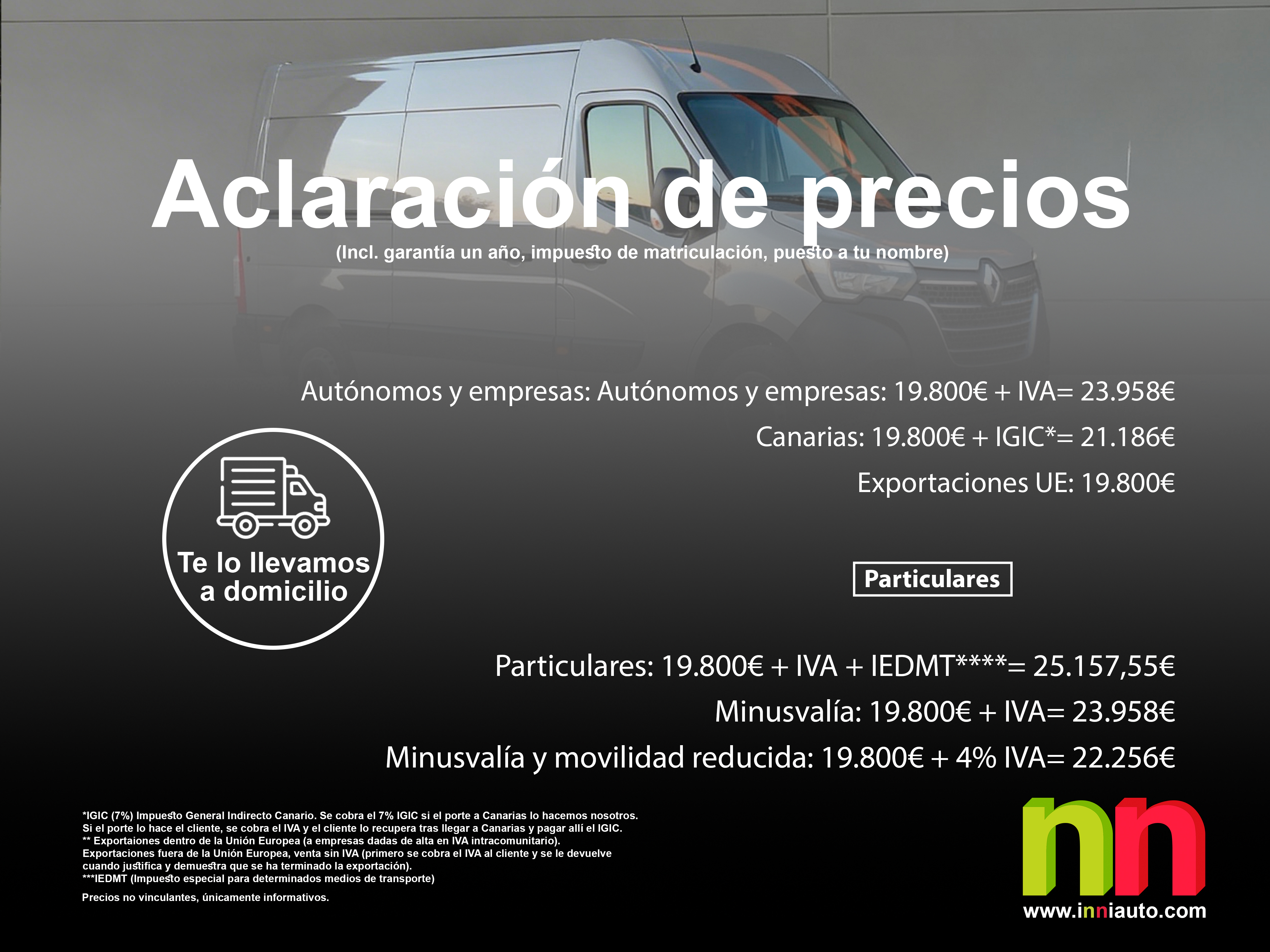 - Particulares: 19.800€ + IVA + IEDMT****= 25.157,55€