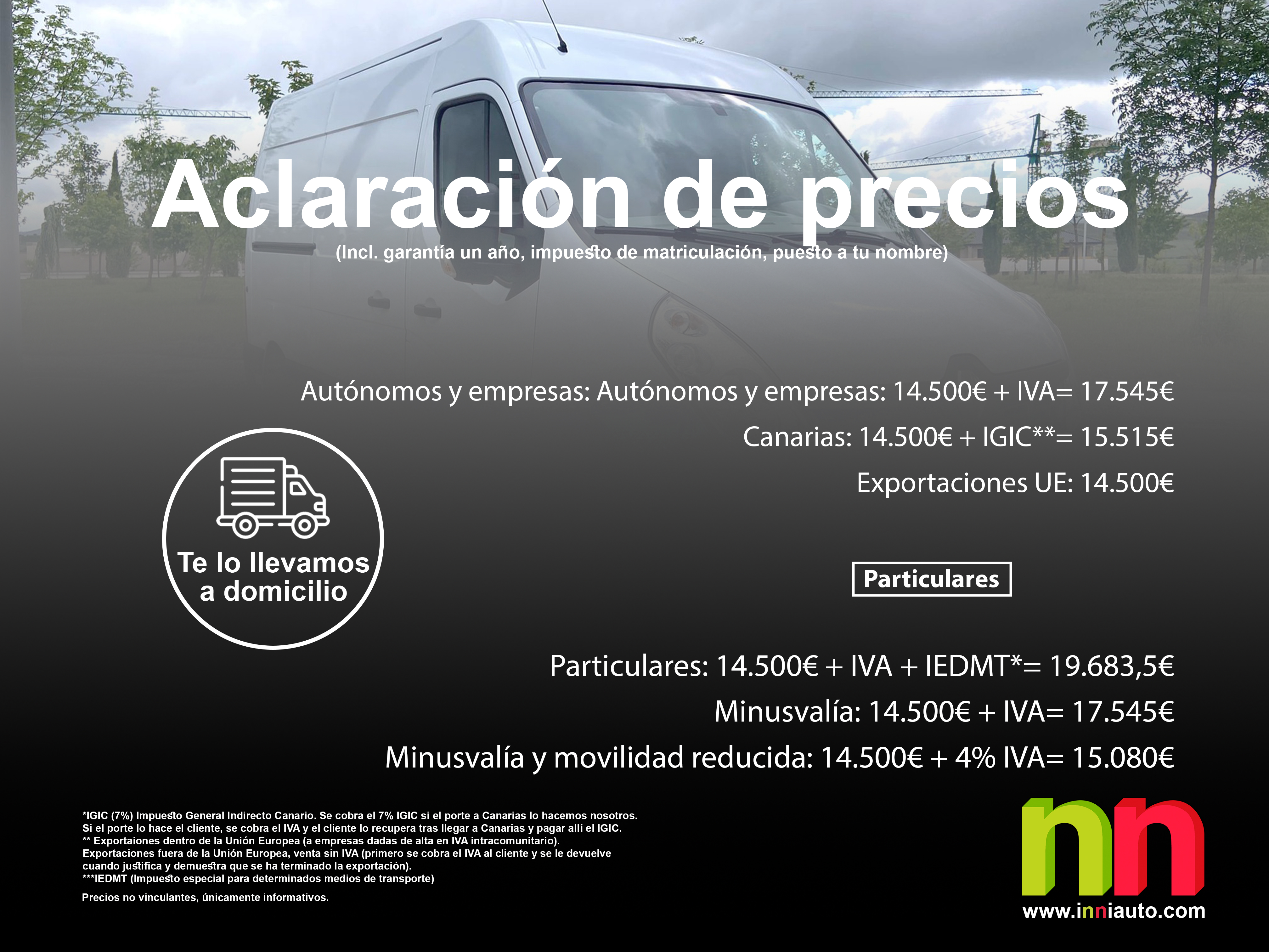 Particulares: 14.500€ + IVA + IEDMT*= 19.683,5€