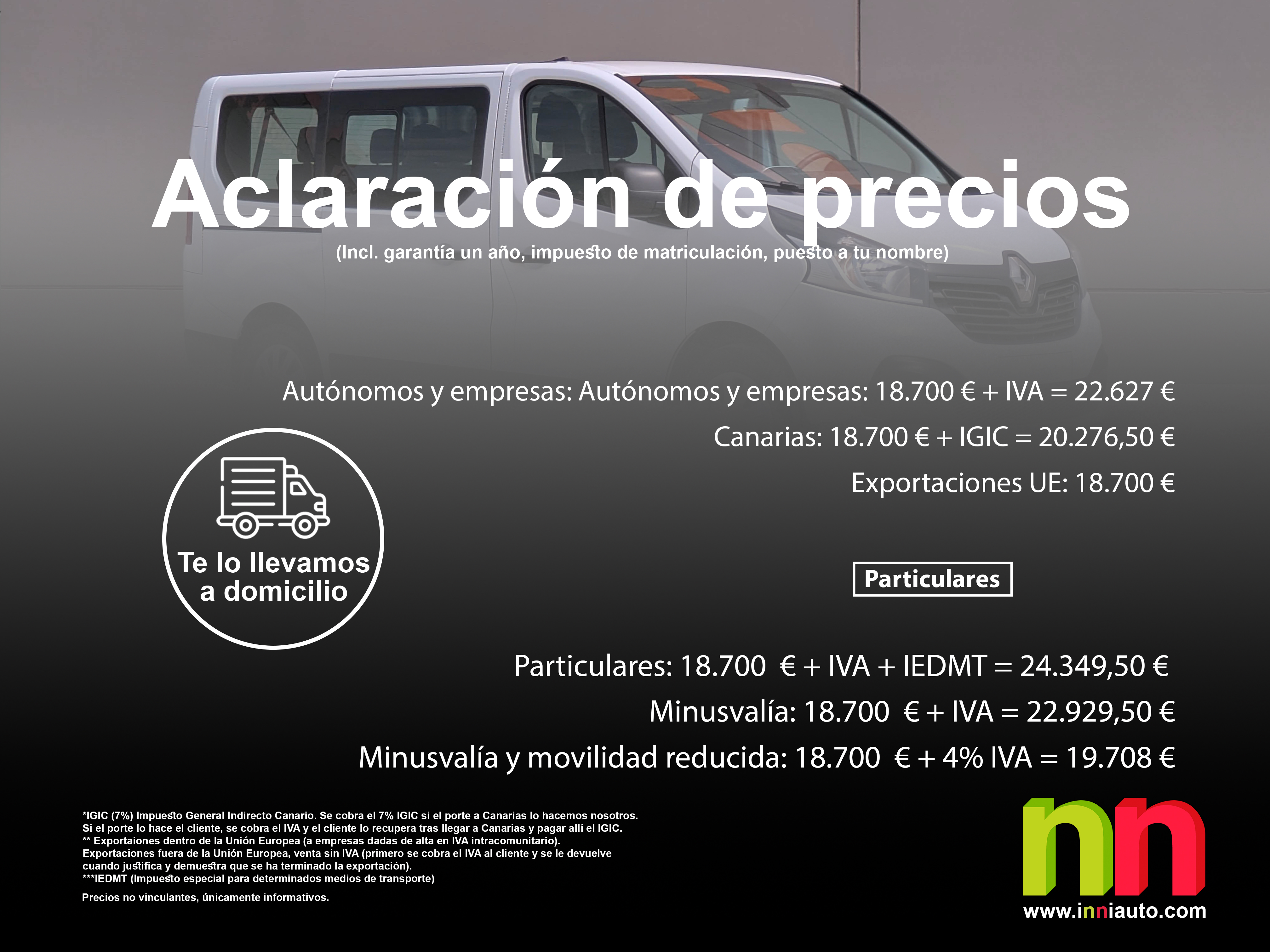 - Particulares: 18.700 € + IVA + IEDMT = 24.349,50 € **