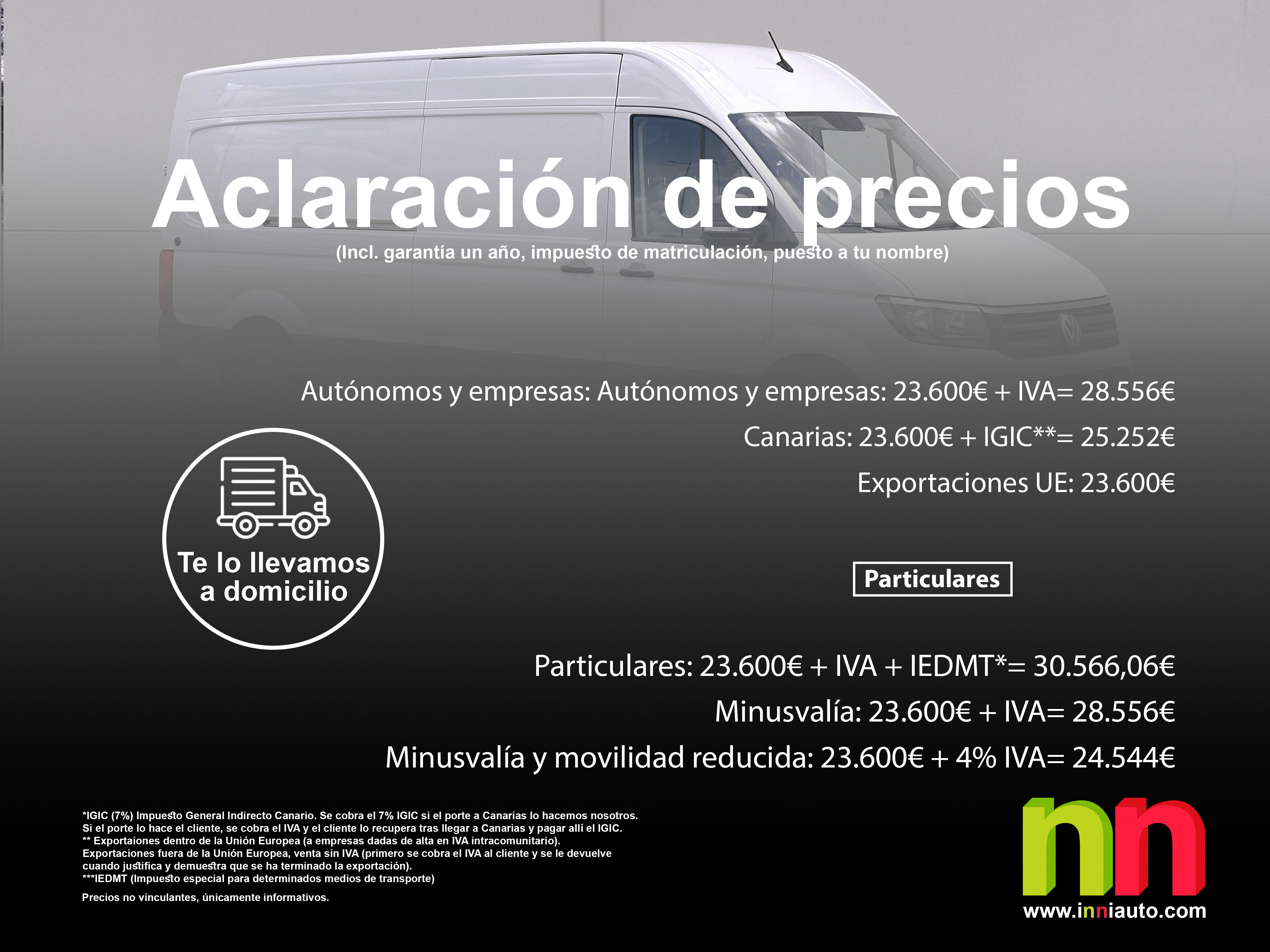 - Particulares: 23.600€ + IVA + IEDMT*= 30.566,06€